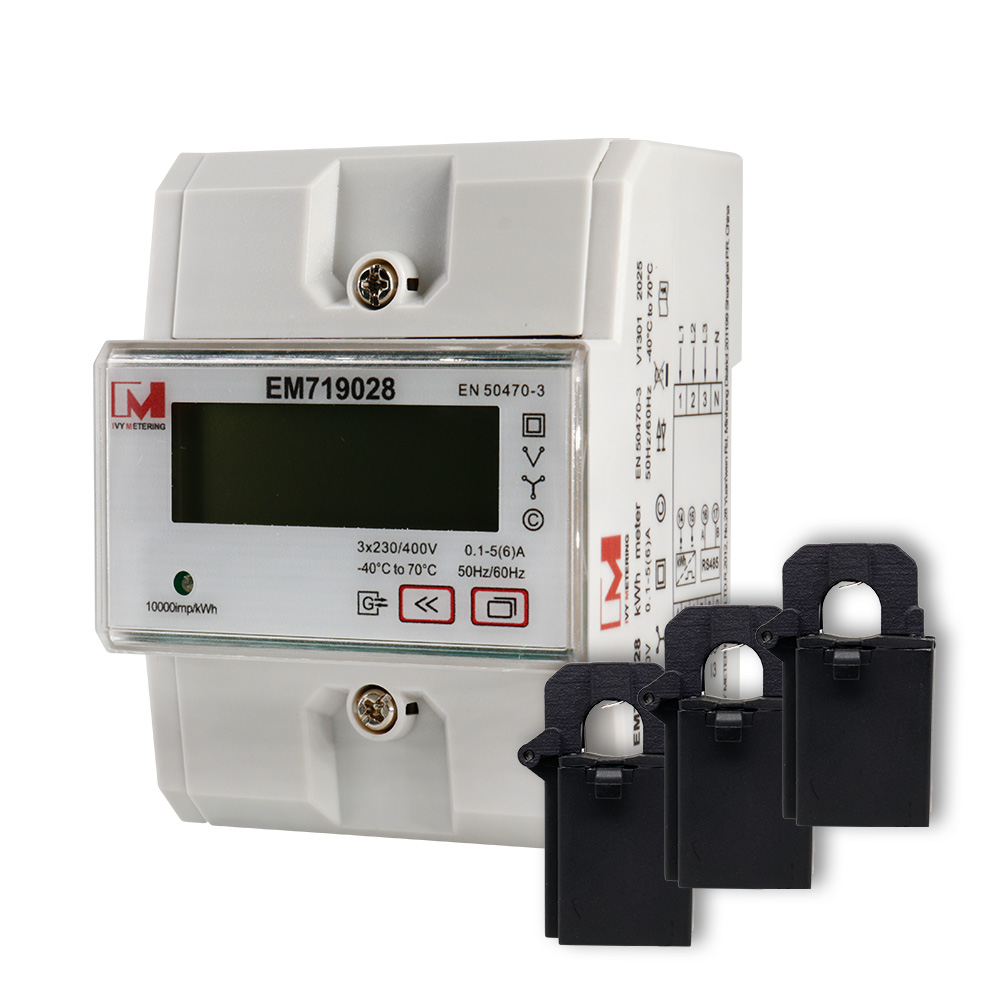 The EM719028 energy meter is a three-phase DIN rail-mounted CT-type energy meter that supports RS485 communication, is compatible with DLT/645 and MODBUS-RTU protocols, has multi-tariff functions, and supports various metering methods. Maximum load: 6A. It can be widely applied in various metering fields and is widely suitable for household and commercial power distribution systems.